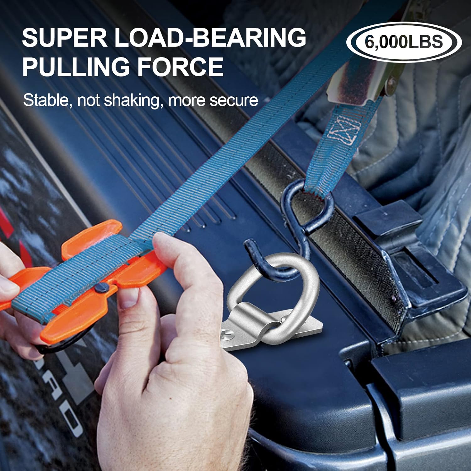 D-Rings, Truck Tie Downs Anchor 3/8" Heavy Duty 6000 Pound Steel Tie-Down Ring for Loads on Trucks, Trailers, Boats, RV Campers, Vans;for Kayaks, Motorcycles, Deliveries, ATVs (Pack of 6)