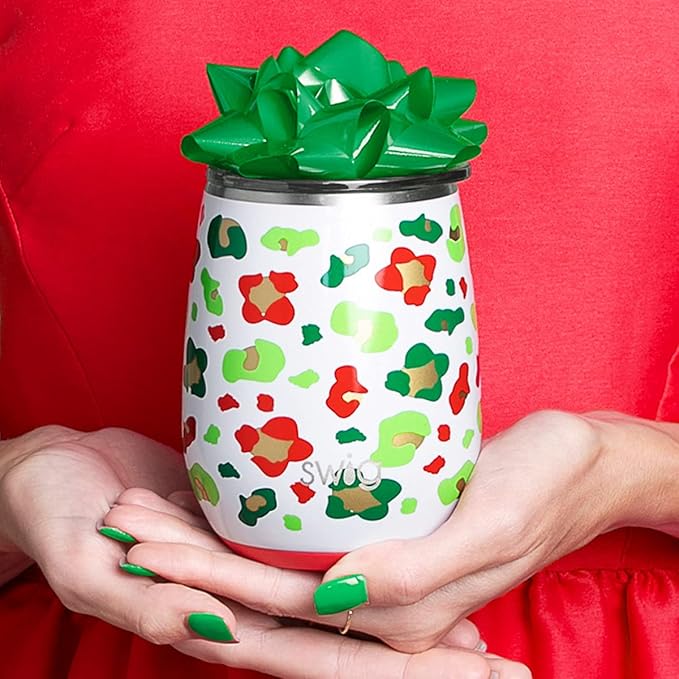 Swig Life 14oz Insulated Wine Tumbler with Lid | 40+ Pattern Options | Dishwasher Safe, Holds 2 Glasses, Stainless Steel Outdoor Wine Glass (Jingle Jungle)