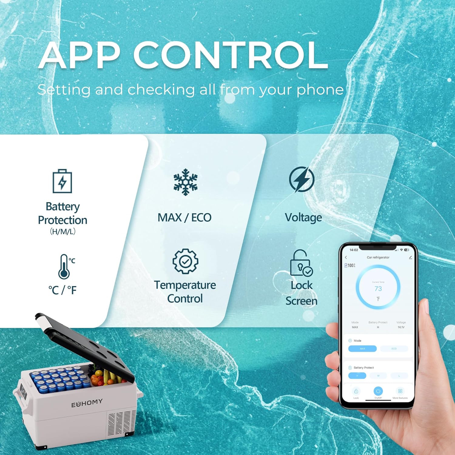 EUHOMY 12 Volt Refrigerator, 38QT(35L) Electric Cooler, 12V Fridge APP Control, 12V Cooler -4℉~68℉, Portable Freezer 12/24V DC 110-240V AC for Camping, Travel, Truck, Home