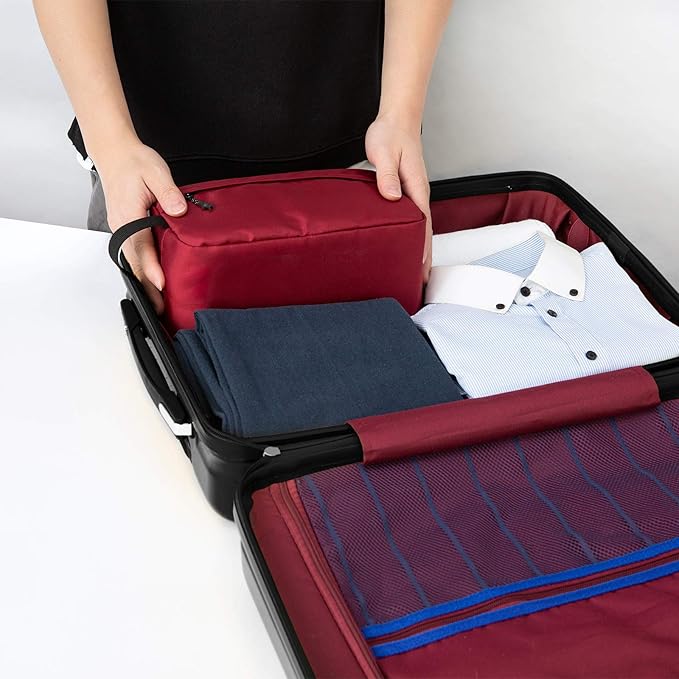 • Large size & organized compartments: Size 10 x 5 x 5.5 inches. 1 Main compartment which is roomy to fit facial cleanser, electric shaver, travel shampoo, and other toiletries. It has 3 small mesh pockets and 1 long mesh zipper pocket inside to store all of your little toiletries without getting disorganized. 1 front zipper pocket that provides extra storage with ease