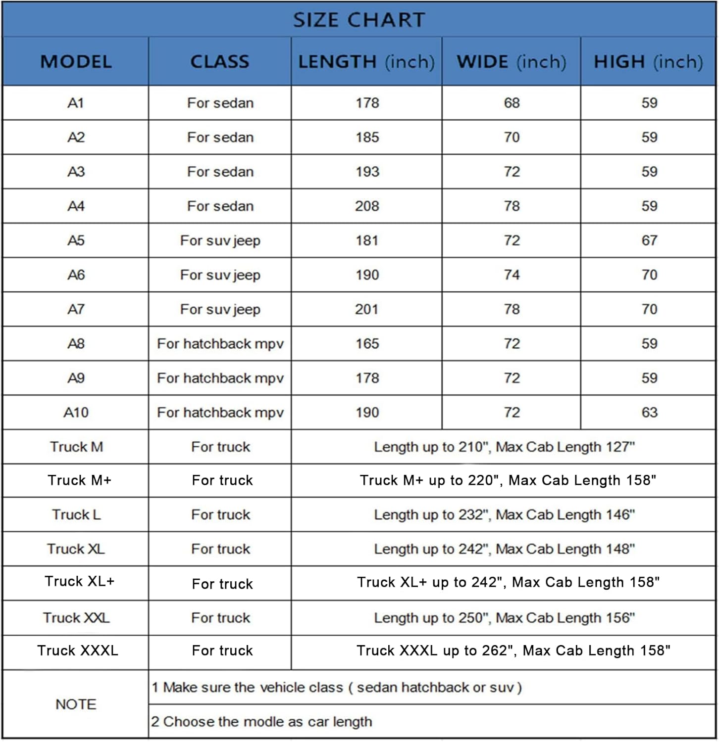 - 【Choose the Right Model】⎯⎯A2 suitable for sedans, Length 178-185 inches. (Not for hatchback suv). For example Fit Sedan-- Toyota corolla Prius, BMW 3 series, Honda insight, Lexus IS250/300/350, KIA Forte,Nissan sentra, Hyundai elantra, Ford focus,Chevy cruze volt , volvo s60 s40, Mitsubishi 3000 etc. If you are not sure if your model is a good fit, look at the fifth model table in the main figure.