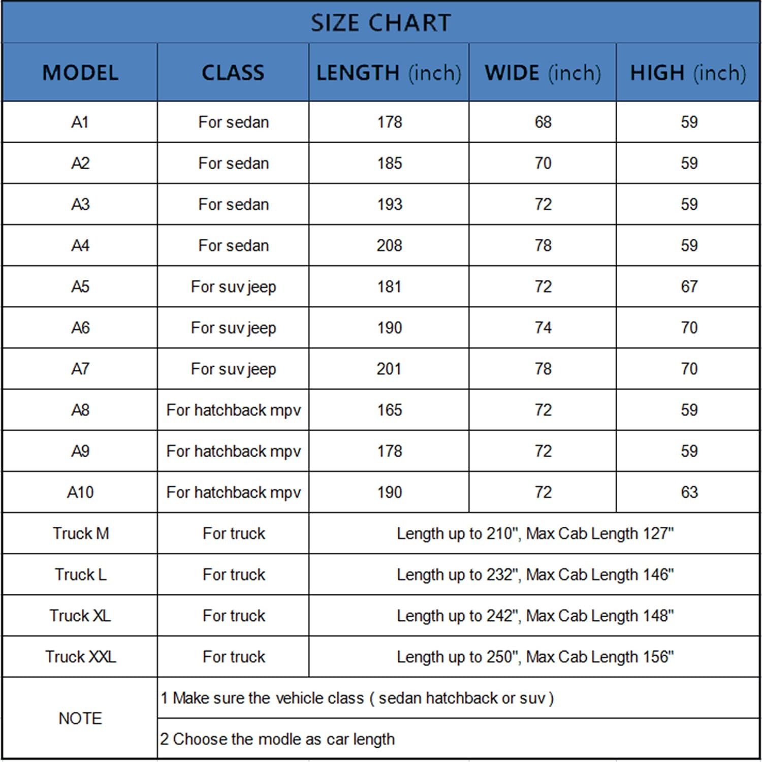 - 【Choose the Right Model】⎯⎯A3 suitable for sedans, Length 186-193 inches. (Not for hatchback suv). For example Fit Sedan--Toyota Camry/Avalon, Honda Accord/Civic, Nissan Altima/Maxima, Audi a4/a5/a6, Tesla Model 3 etc.If you are not sure if your model is a good fit, look at the fifth model table in the main figure.