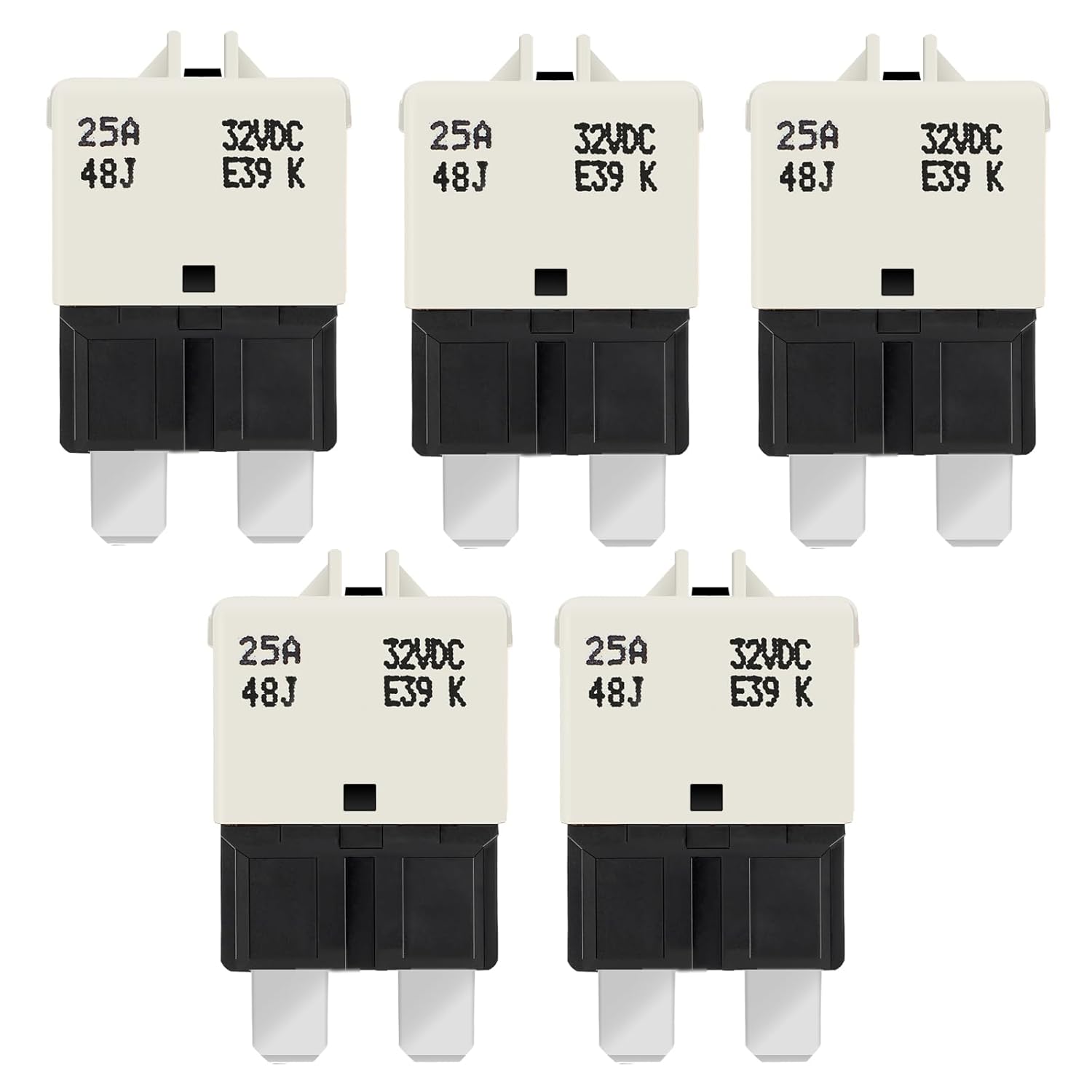 GLOSO Circuit Breaker Fuse E39 (T3) Manual Reset for Car Truck RV Automotive Marine Boat Trolling Motor & Custom Wiring Audio Battery Protection/Low Profile ATC/ATO (25A - 5 Pack)
