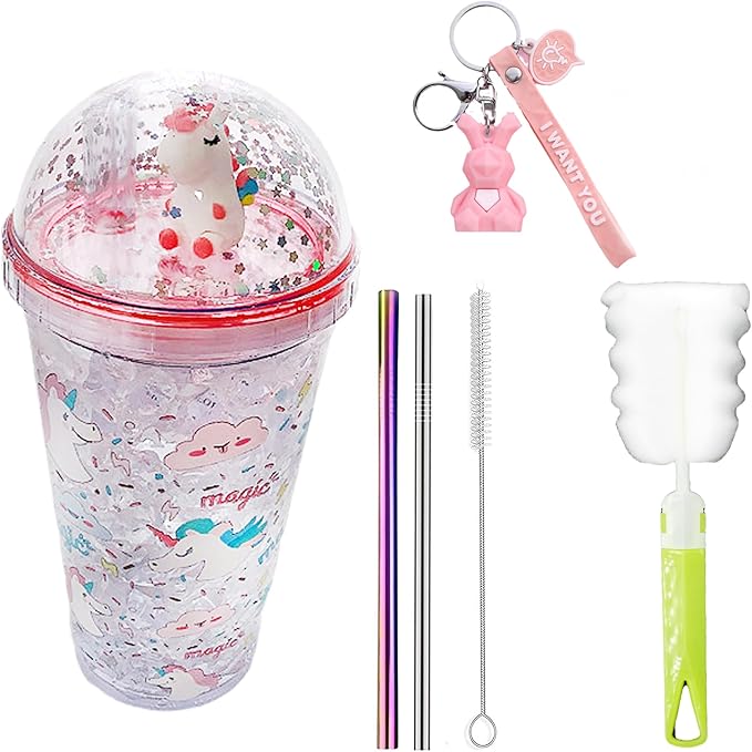 - 💜Lid and straw: Those unicorn tumblers feature a straw and a silicone seal. You don't have to worry about spills a lot. The drinking cups are suitable to carry outside or on a vacation. But the product is not completely sealed, please keep it in an upright position and do not put it in the backpack.