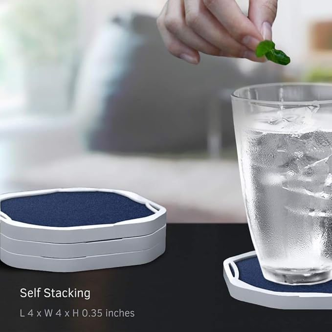 UMIRRO Navy Blue Coasters for Drinks Absorbent | Large Bar Coasters for Tabletop Protection | Non-Slip, Non-Stick to Cup, Unbreakable and Kid Safe | Unique Novelty Housewarming Gift | Set of 4