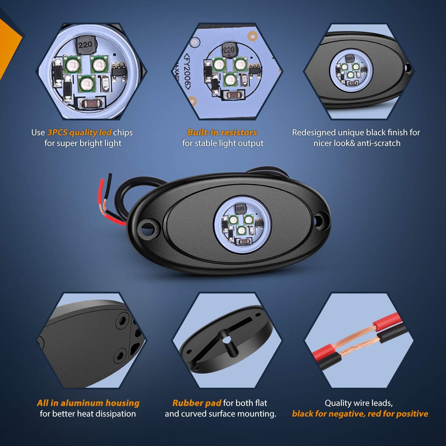 - Easy Installation: Get lights seated on rubber pads, with wires coming out from the side, and then mount light on the position with screws and nuts provided. Rubber pad works on both flat and curved surface