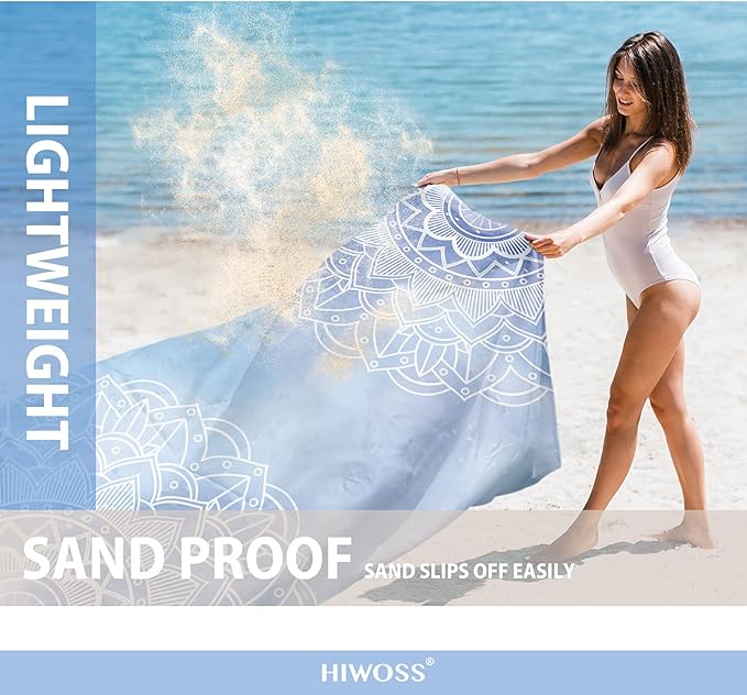 - 🌊【PORTABLE,FOLDARBLE&DUARABLE】The blanket comes extremely folded in a compact mesh bag which is easy to leak sand, wash, and quick dry. You can easily carry it for anywhere!