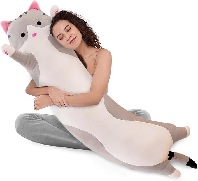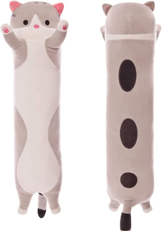 WUYU Lovely Plush Cat Doll Cute Cartoon Soft Stuffed Kitten Pillow Long Throw Sleeping Pillow Doll Toy Gift for Kids Girlfriend Multiple Size (Grey,130cm/51.1in)