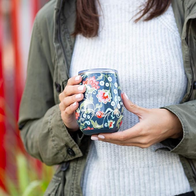 Swig 14oz Insulated Wine Tumbler with Lid, Dishwasher Safe, Stainless Steel Wine Cups (Indigo Isles)
