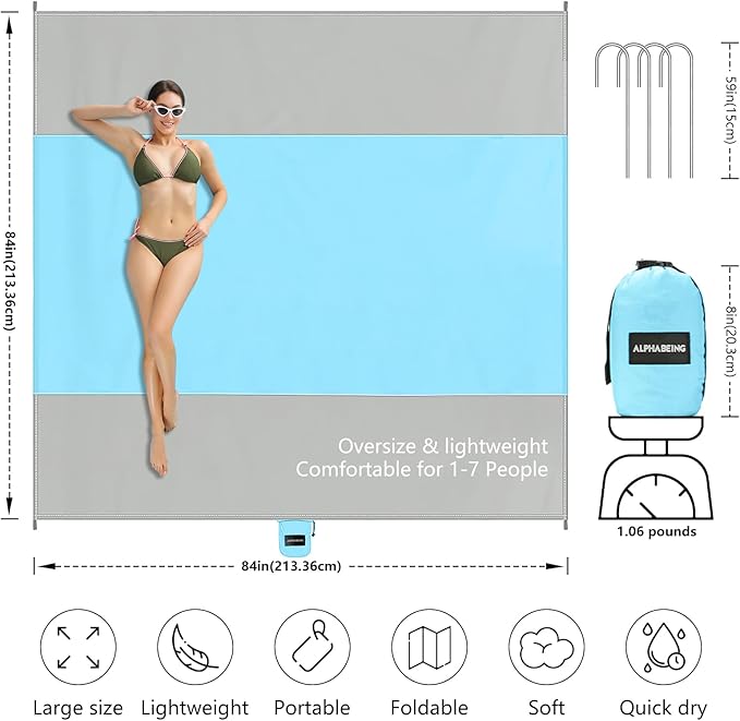 AlphaBeing Beach Blanket – Oversized 84"x84" Sandproof, Waterproof, Quick-Dry Mat for 1–7 Adults