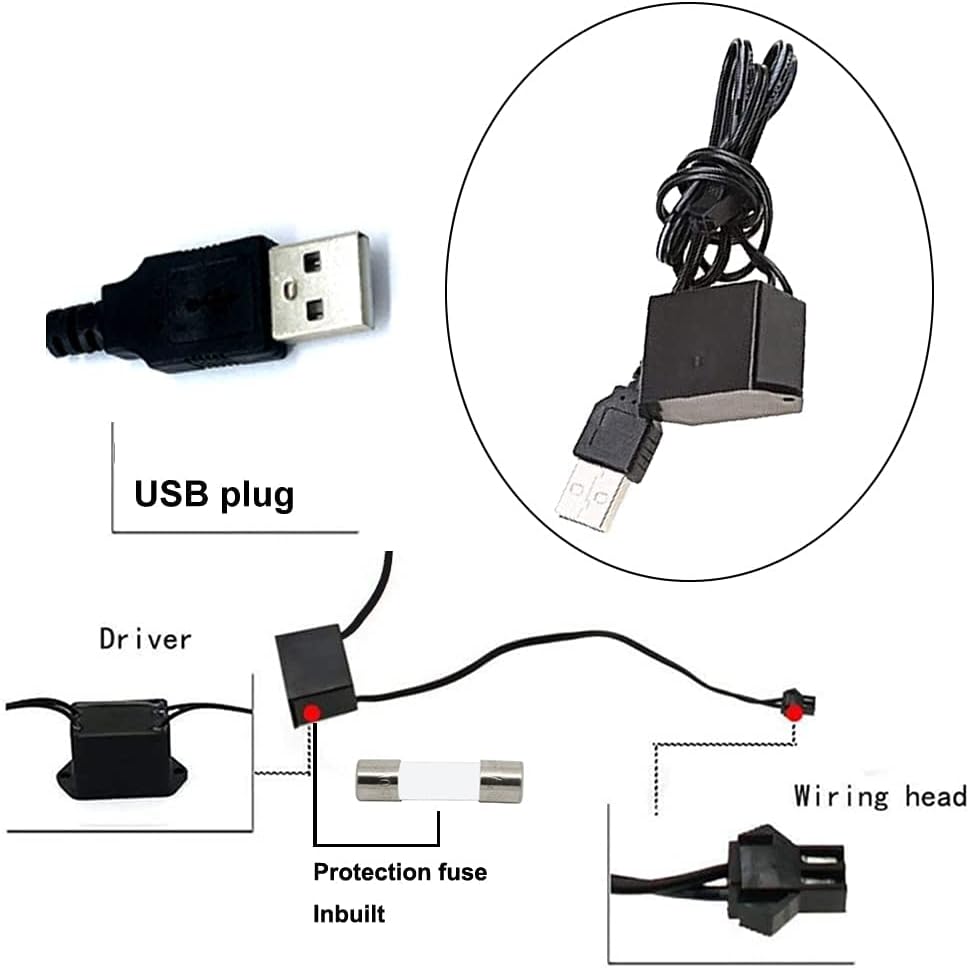 - [EL Wire Specifications] Wire length: 16.4 ft / 5 m, wire diameter: 0.09 in / 2.3 mm, with a 6 mm sewing edge. Voltage: 5V USB. The LED electroluminescent light strip kit is designed for decorating gardens, stages, fences, fountains, outdoor spaces, or festive occasions like Christmas and other holidays.