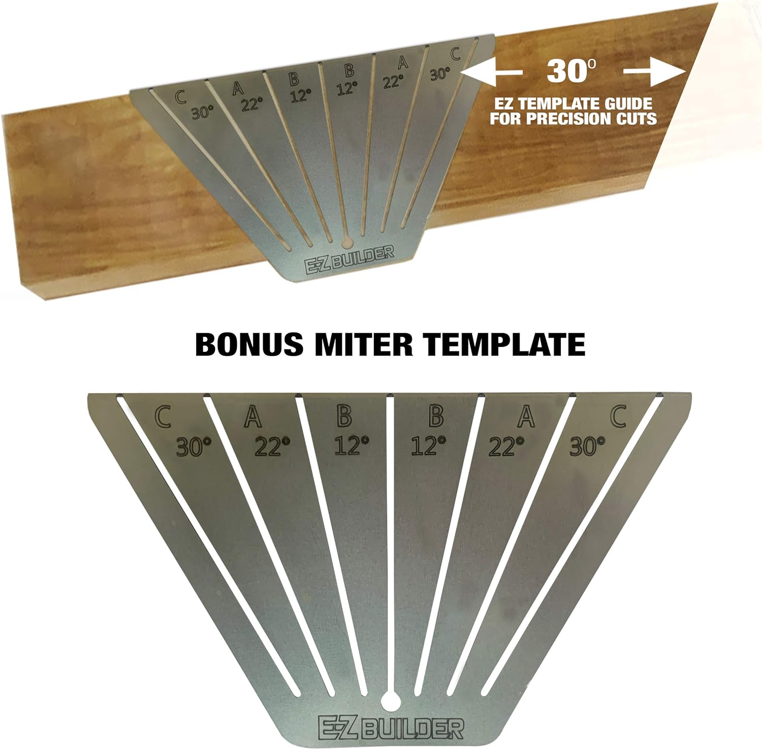 - EZ MITER TEMPLATE INCLUDED – Only provided by EZBUILDER. Square cuts are weak. EZ Miter, Patent Pending, Reusable Template is a sturdy guide, to make the cuts easy!