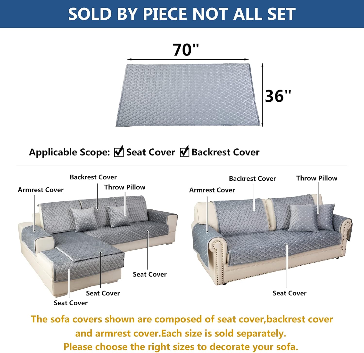 Eismodra Couch Cover,Sectional Couch Covers,Sofa Covers for 3 Cushion Couch,Anti-Slip Sofa Slipcovers for Dogs Cats Kids Loveseat Recliner L Shaped Armrest Backrest,Light Gray 36''x70''(Only 1 Piece)
