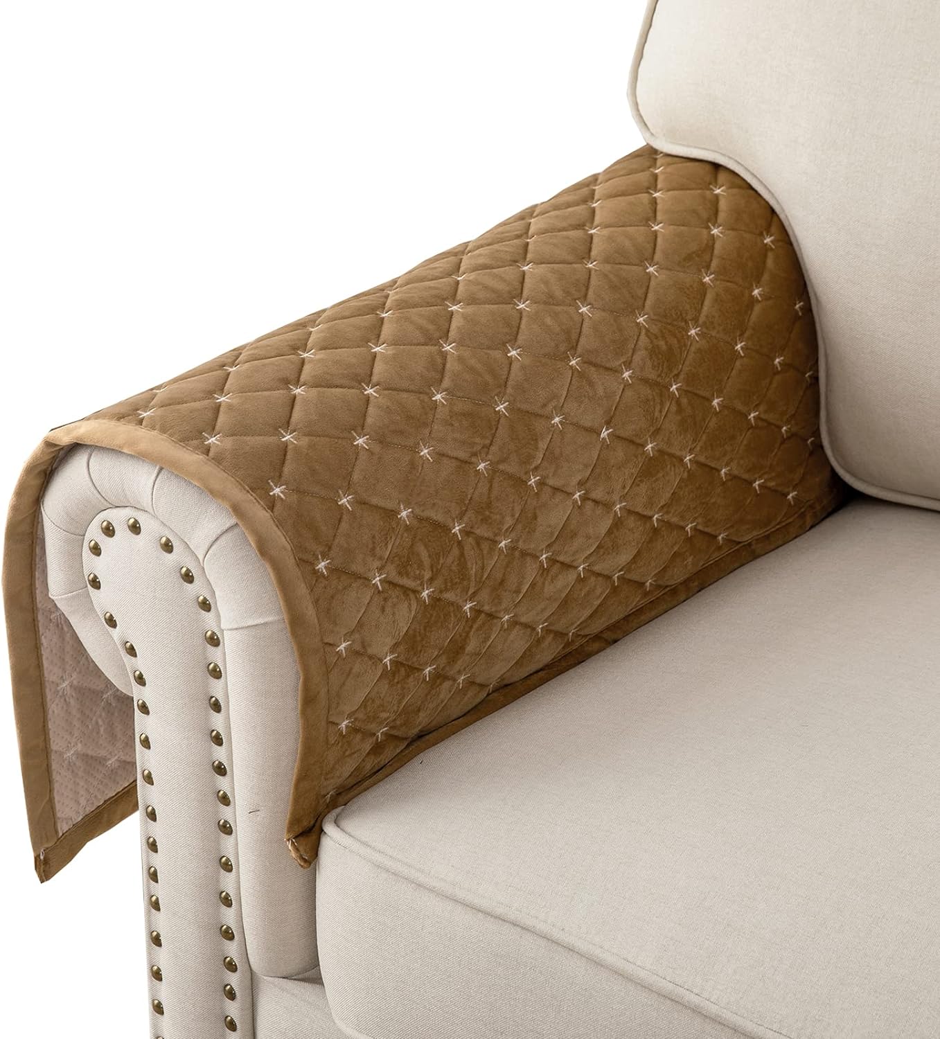 Eismodra Armrest Covers,Couch Cover,Sofa Cover,Backrest Covers,Anti-Slip Armchair Slipcovers for Dogs Cats Pet Loveseat Recliner Leather L Shaped,Coffee 28 x 28 Inches (Only 1 Piece)