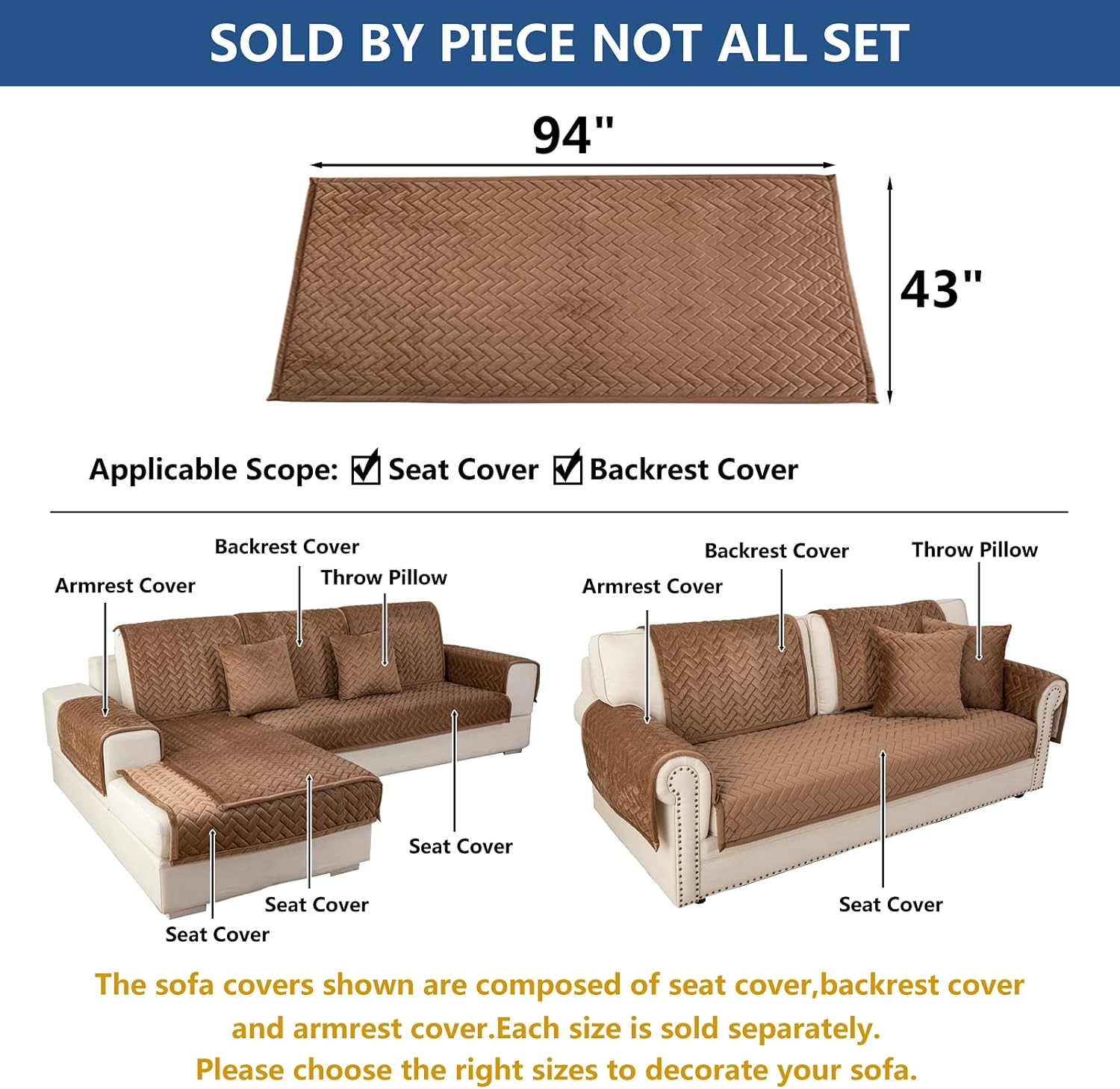 Eismodra Couch Cover,Sectional Couch Covers,Sofa Covers for 3 Cushion Couch,Anti-Slip Sofa Slipcovers for Dogs Cats Kids Loveseat Recliner L Shaped Armrest Backrest,Brown 43''x94''(Only 1 Piece)