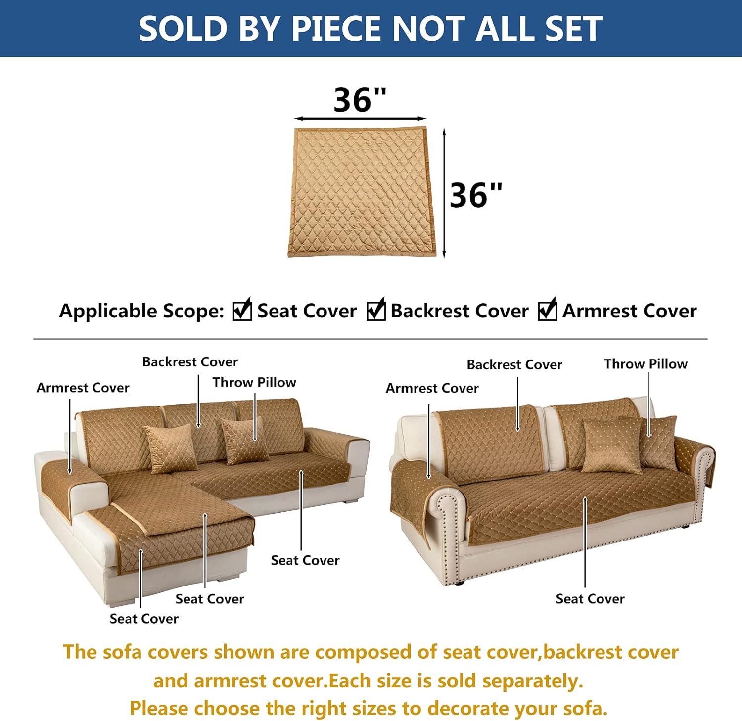 Eismodra Couch Cover,Sectional Couch Covers,Sofa Covers for 3 Cushion Couch,Anti-Slip Sofa Slipcovers for Dogs Cats Kids Loveseat Recliner L Shaped Armrest Backrest,Coffee 36''x36''(Only 1 Piece)