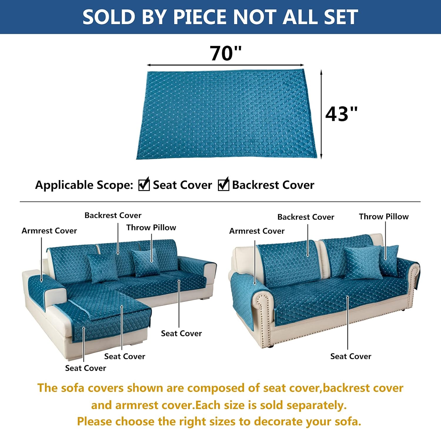 Eismodra Couch Cover,Sectional Couch Covers,Sofa Covers for 3 Cushion Couch,Anti-Slip Sofa Slipcovers for Dogs Cats Kids Loveseat Recliner L Shaped Armrest Backrest,Blue 43''x70''(Only 1 Piece)