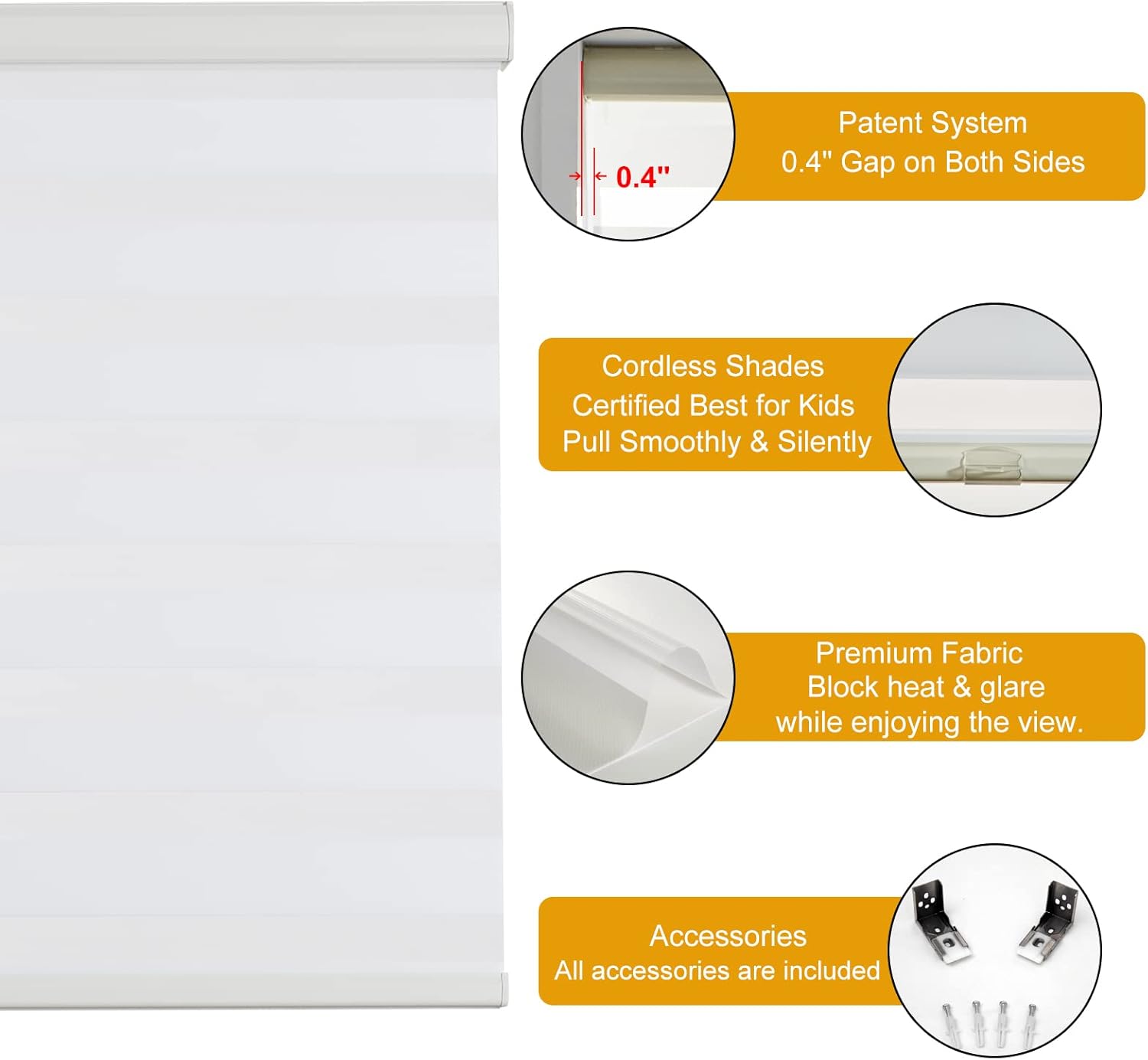 Persilux Cordless Zebra Blinds for Windows Free-Stop Roller Windows Shades (24" W X 72" H, Cream) Dual Layer Light Control for Day and Night, Light Filtering Sheer Shades for Home, Bedroom,