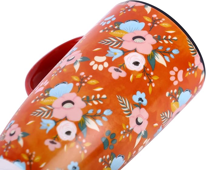Topadorn Coffee Ceramic Mug Porcelain Latte Tea Cup With Lid 17oz. Orange Coffee Cup