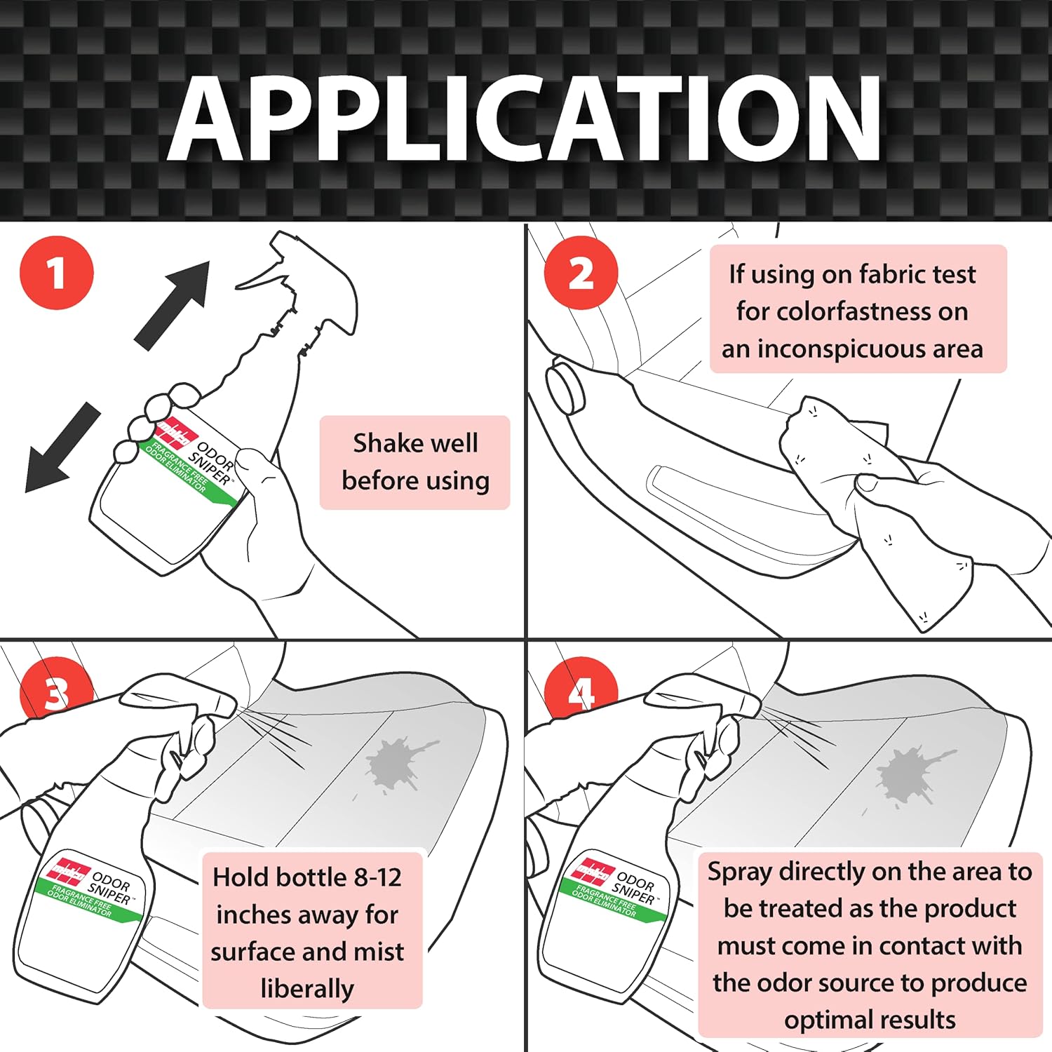 - EASY APPLICATION: Our Odor Sniper is ready to use out of the bottle – simply spray to apply.