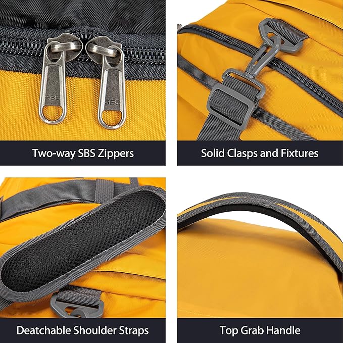 - Versatile Carrying Choices: Our travel duffel bag boasts detachable and adjustable straps, providing the option to wear it as a shoulder bag. Furthermore, two shoulder straps are cleverly concealed in the back zipper compartment, seamlessly transforming it into a backpacking backpack. The top handle allows effortless hand-carrying or convenient attachment to a suitcase. The side handles offer the flexibility to carry it alone or lift it jointly with a companion.