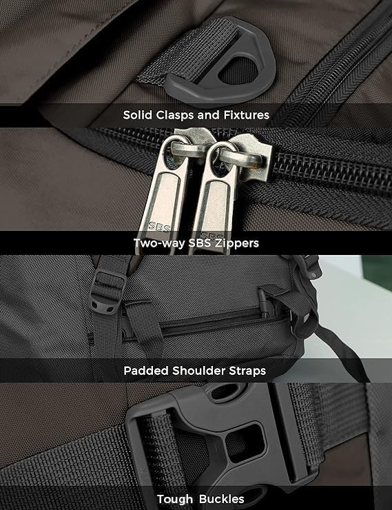 • Versatile Carrying Choices: Our travel duffel bag boasts detachable and adjustable straps, providing the option to wear it as a shoulder bag. Furthermore, two shoulder straps are cleverly concealed in the back zipper compartment, seamlessly transforming it into a backpacking backpack. The top handle allows effortless hand-carrying or convenient attachment to a suitcase. The side handles offer the flexibility to carry it alone or lift it jointly with a companion.