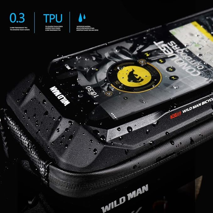 - 【HIGH SENSITIVE CLEAR TOUCH SCREEN】 0.3mm transparent TPU touch screen, thinner, more sensitive and more fitting, this cycling top tube bag let you easily operate all the functions of the smartphone, especially viewing the map while riding, give you a smoother experience.