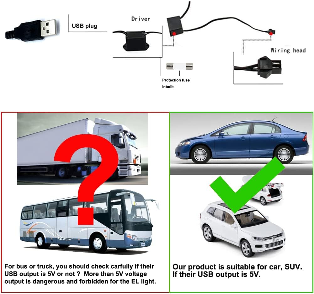 - Included Components : 1 x 9.8FT EL Wire, 1 x USB driver(5V)