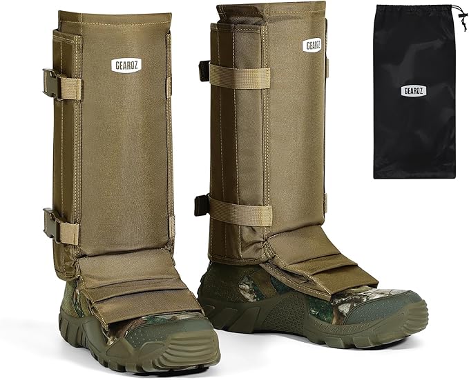 - 👍LIGHTWEIGHT & PORTABLE: The GearOZ snake bite guard is incredibly lightweight with just 13oz each. They can be easily folded and stored in the provided storage bag when they are not in use. Whether you're hunting, weed whacking, hiking or engaging in various outdoor activities, these shoe gaiters are your perfect companion.