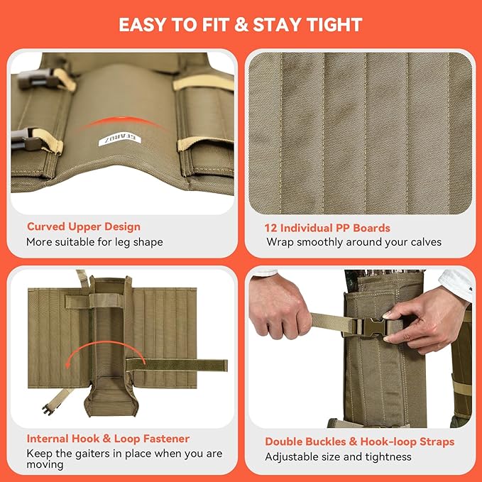 - 💪STRONG STRUCTURE & MATERIAL: Made from 1000D Oxford and 12 separated PP boards, the snake guards provide robust defense against snake bites, which are durable and suitable for both men and women, offering effective protection.
