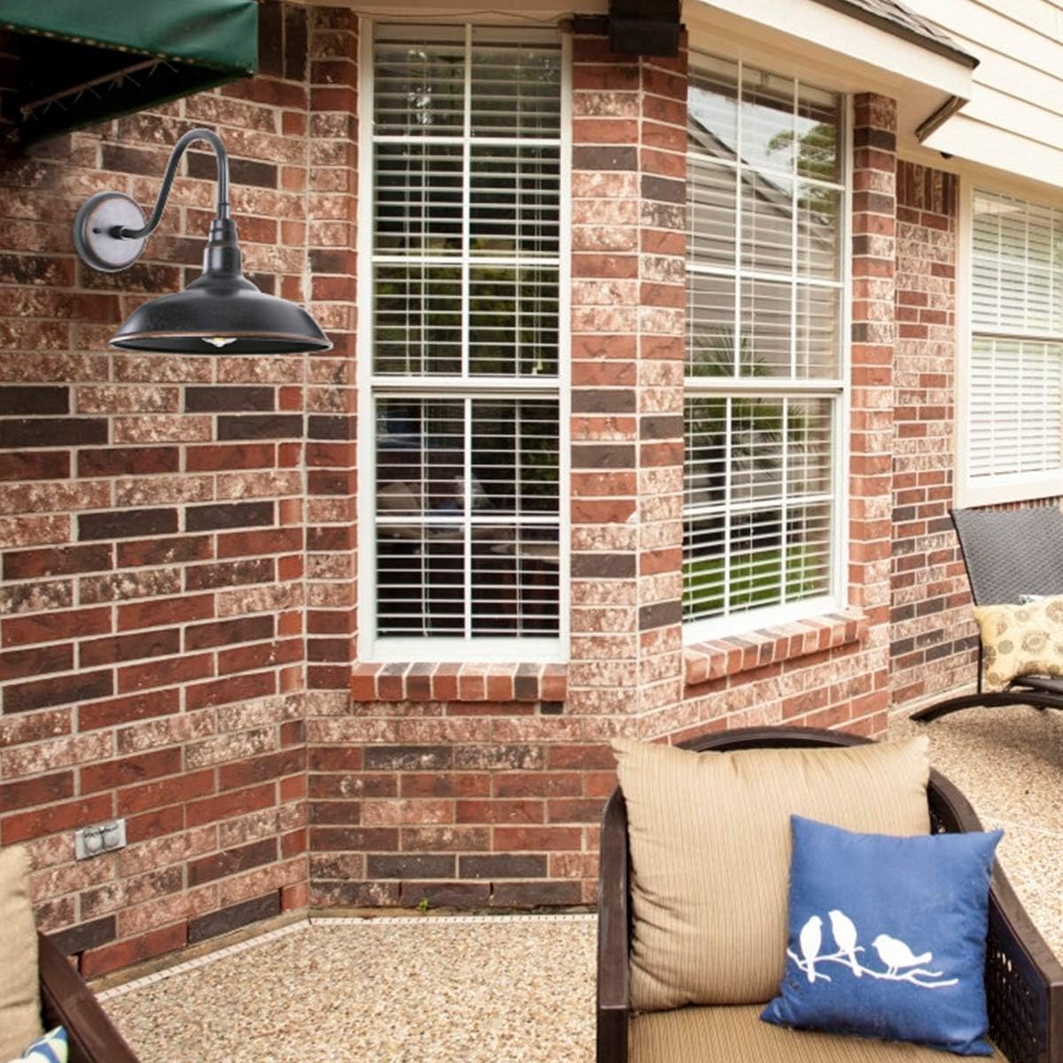 - Vintage Barn Light Makes Your Home Stylish: Featured with its classic goose neck arm, retro bronze finish, and a large 14 inch dome cover, this exterior farmhouse wall lights brings a pleasing and simplistic elements to both exterior and interior place. The open bulb area makes this gooseneck light cascade the light down amazingly, meeting the illumination needs for your cabin, doorway, garden, yard, front and back porch, and also commercial place