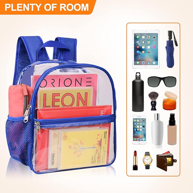 - 【Time-saving and Convenient】The clear backpack allows complete visibility all around.Pass through security with the see-through backpack to avoid being turned away at security checkpoints, and it's convenient to double-check that you have everything you need before leaving.
