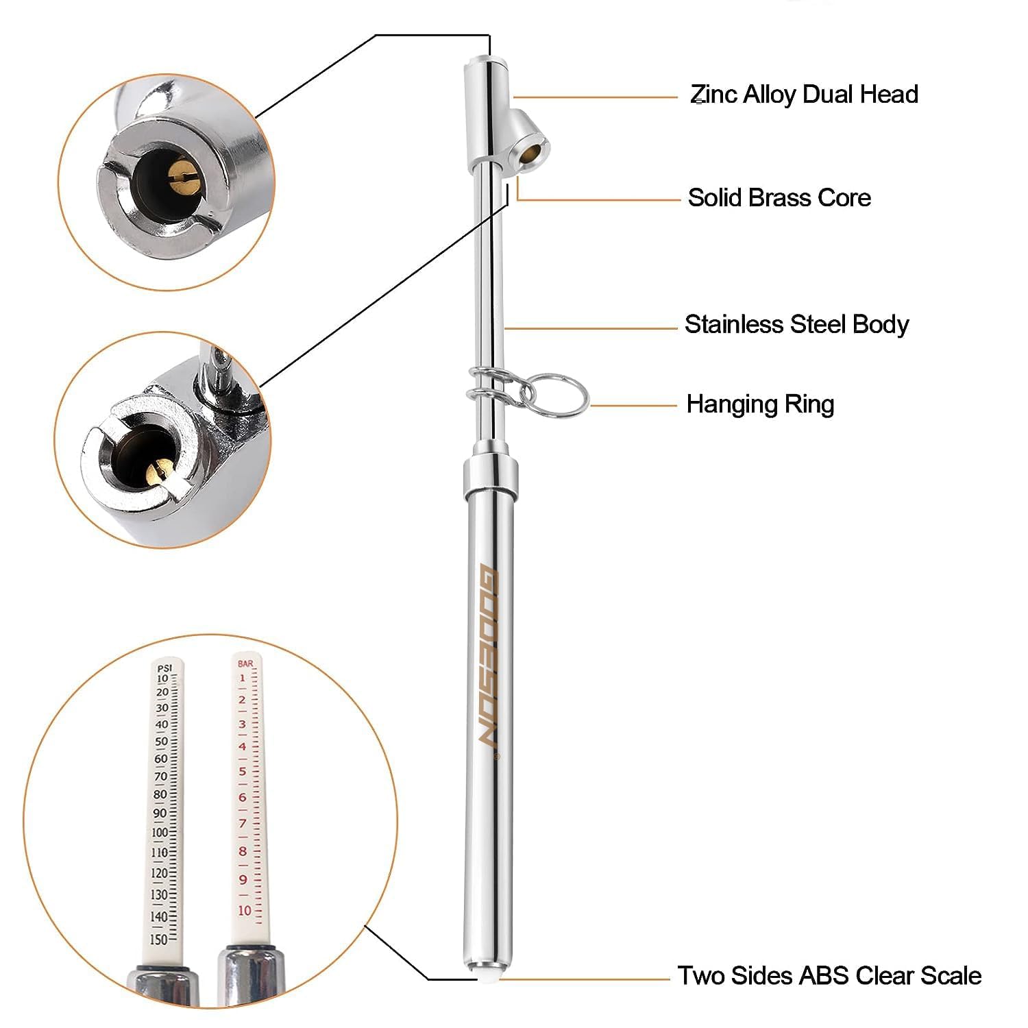 GODESON Dual Head Tire Pressure Gauge,Heavy Duty Pen Tire Gauge Range 10-150PSI; 1-10Bar,Dual Head Truck Air Pressure Gauge (Pack of 12)…