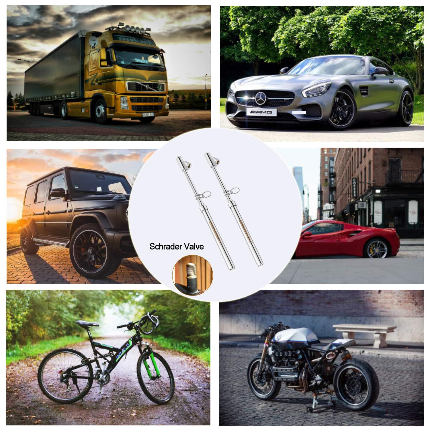 - 2.ACCURATELY MEASURE THE TIRE PRESSURE:Two-side ABS bar calibrated:10-150 psi / 1-10bar; 2 psi increment,Easy read printed clear scale .Perfect for truck, car, suv, rv, atv, bike or motorcycle with schrader valve