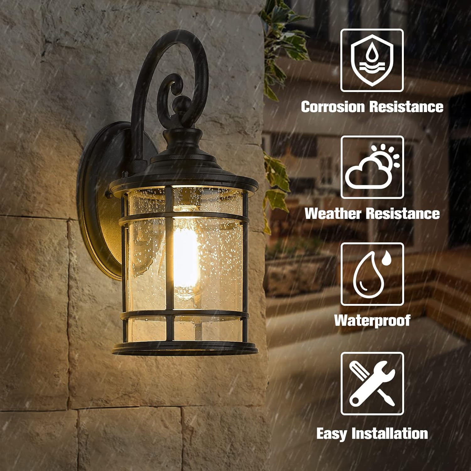 - ETL Listed with a one-year warranty. This outdoor wall mount light fixture is perfect for your house, porch, garage, hallway, and entryway.