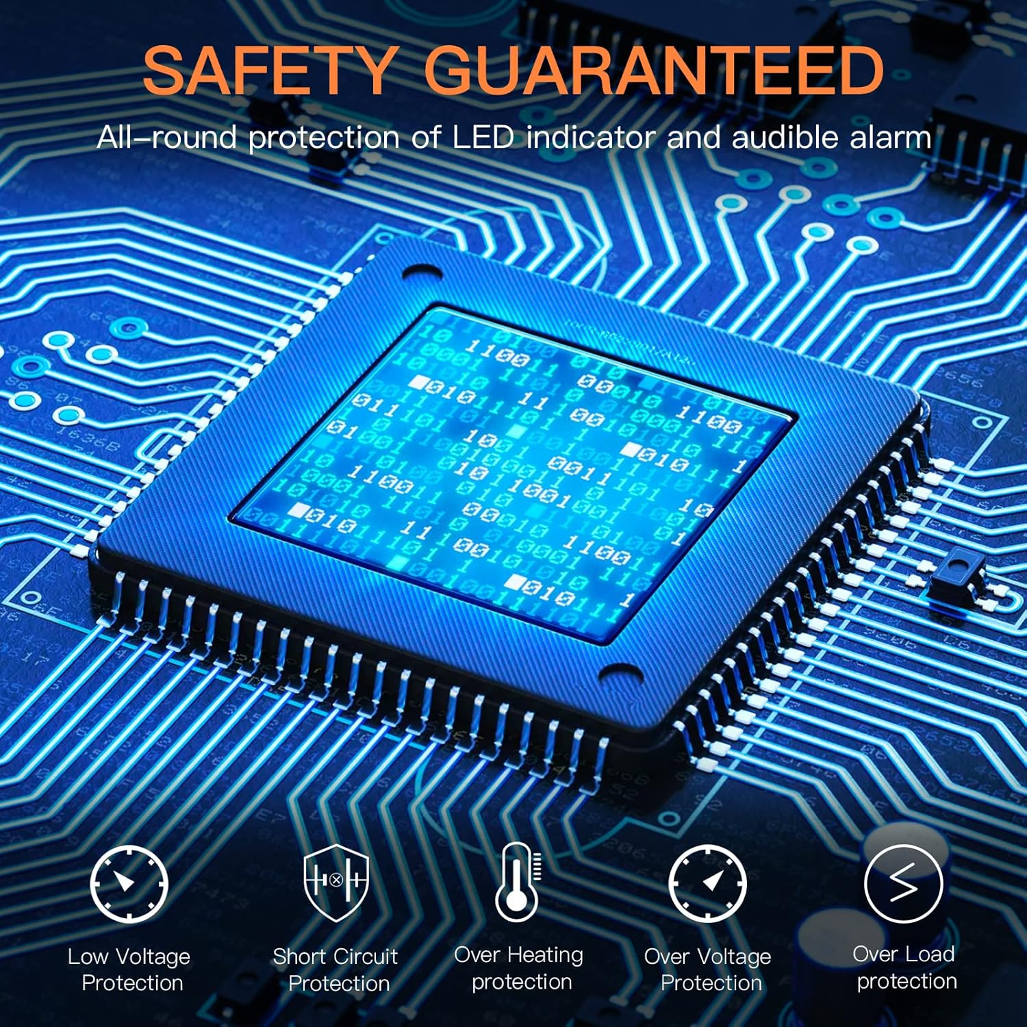 - 3.【Safety& Stability】With 6x30A built-in fuses, This 12V inverter protects your device from short circuit current; The grounding wire is designed to protect the human body from current damage in case of failure; The stable charging technology of the 12V truck inverter protects against overheating, under and over voltage charging, short circuiting, overloads, and overcharging.