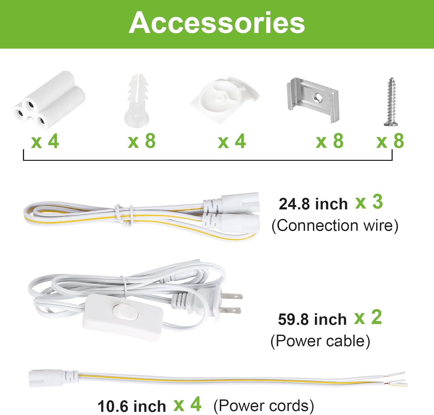- ✅ Easy Installation - Plug & Play. Come with 59" power cord with on/off switch, and other small accessories, no external or internal wiring needed.