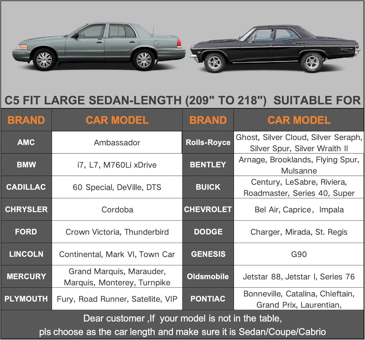 - 【Dimension C5】Universal fit for large sedan Coupe Sports Car which length is 209 to 218 inch. (NOT FOR HATCHBACK/SUV). Come with a large enough and waterproof portable storage pocket to store the cover.