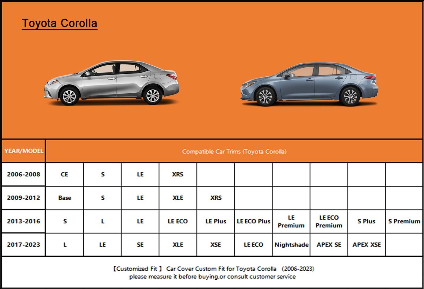 - 【Suitable for】— Custom fit for toyota corolla sedan(1996-2025),Come with a large enough portable bag to store your cover when you do not use.