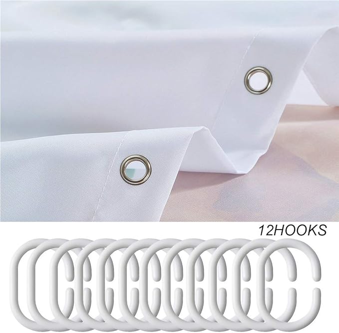 - YOU WILL RECEIVE : One shower curtain and 12 plastic curtain hooks.