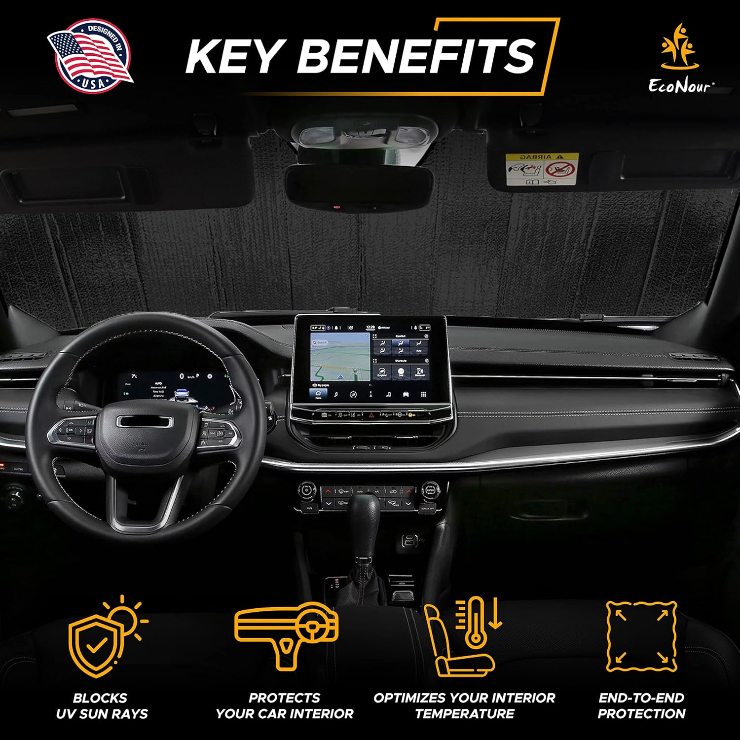 EcoNour Accordion Car Windshield Sun Shade for Trucks | Car Window Shades for Large SUVs & Pickups | UV Blocker Sun Visor for Interior Protection & Heat Control | XL (66 x 27 Inches)