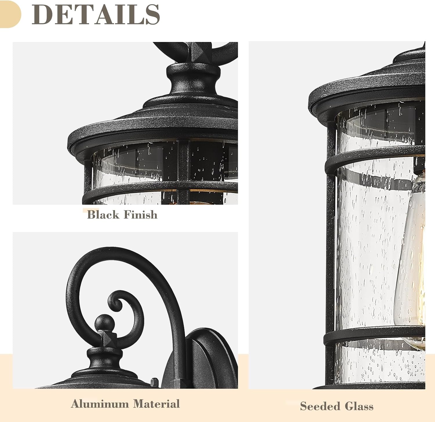 - Weather-resistant and suitable for wet locations, this modern porch light features sturdy aluminum construction and seeded glass shade in a black finish