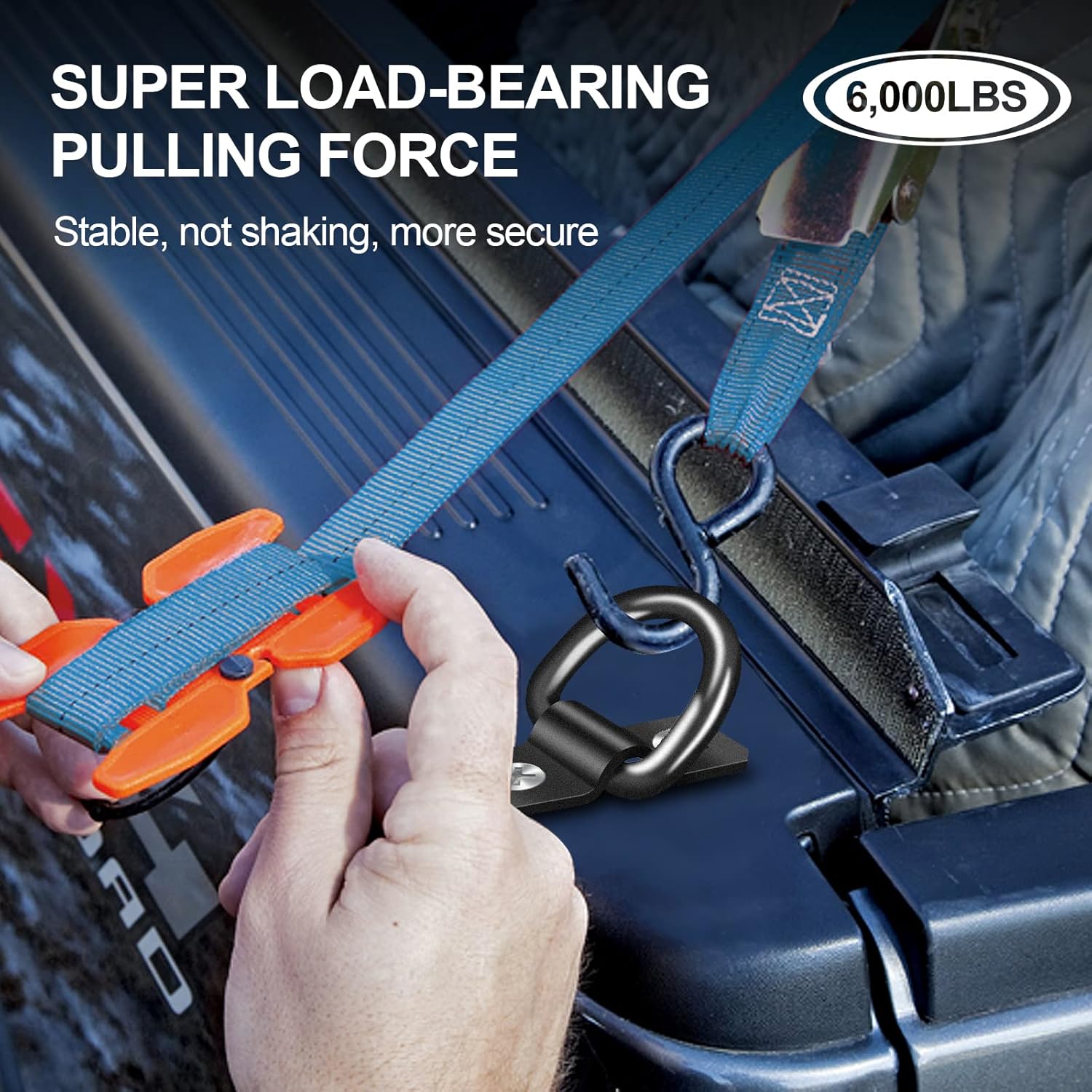 D Rings Tie Down Anchors 3/8” Heavy Duty 6000 Pound Breaking Strength for RV Camper Pickup Trailer Cargo Control, Tying Down Motor Bikers,ATV Surface Mount Bracket Enclosed Points(Pack of 6 Black)