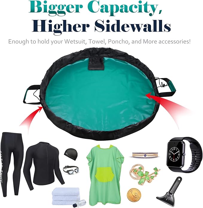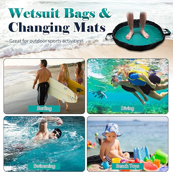 - 【HEAVY-DUTY & BIG CAPACITY】Our wetsuit changing mat is made of high-quality oxford cloth, The flat diameter of the round mat is 86cm/33.85in, it's big enough to let you stand on the mat change clothes with your children together.