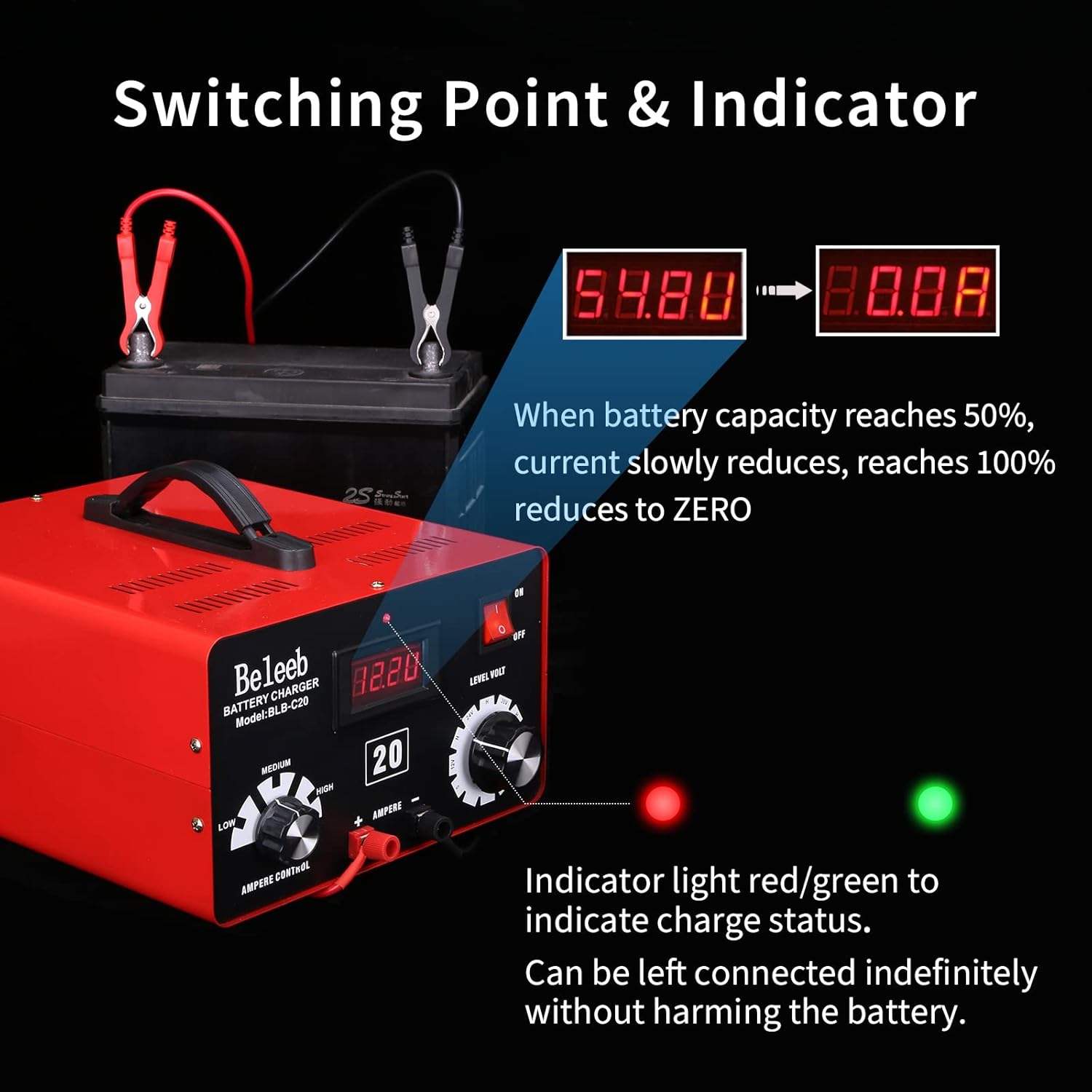 - Intelligent charging program>> Be sure to choose the corresponding voltage to charge your batteries. The charger will automatically adjust the charging voltage and current according to the battery status. Constant current, constant voltage power supply for zero voltage charging for troubleshooting low voltage batteries or equalizing unbalanced battery system for longer battery life.