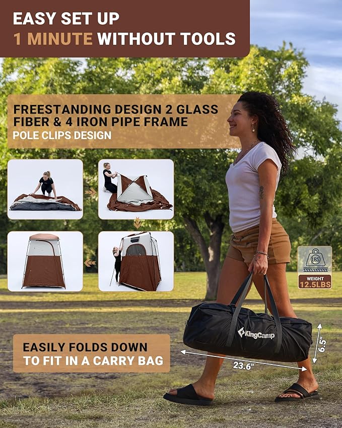 KingCamp Camping Shower Tent, Portable Outdoor Privacy Toilet & Changing Tent Windproof & Waterproof Easy Setup 1 or 2 Room Shelter with Shower Bag for Camping Hiking Beach