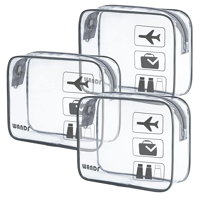- TSA APPROVED --- Made of clear PVC fabric, the WANDF toiletry bag strictly adheres to TSA 3-1-1 liquids rules for carry-on bags on all airlines. This makeup bag measures 7.7 x 5.9 x 2.8 inches, which is large enough to hold 100ml liquid bottles. It helps individuals spot items without rummaging through the bag. You cannot imagine how quickly and easily this clear shower bag can help you pass through security screening or find the items you need!