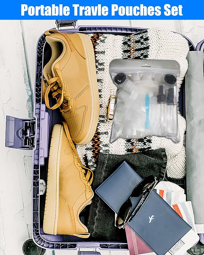 - 【MUST-HAVE Travel Sets】These travel containers for toiletries are compact and lightweight for easy packing into your purse, carry-on, backpack or suitcase. Our travel-size poucehs are reusable, leak-proof, durable and dishwasher safe.