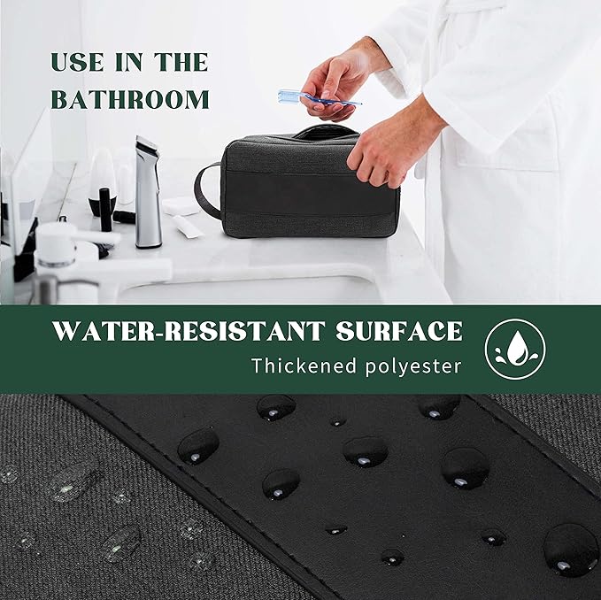 - Quality & water-resistant material: The shaving bag is made of thickened polyester with good stitching that makes the bag itself sturdy and very well-constructed, even used for a long time it remains attractive and a good shape. The surface of the toiletry organizer is water-resistant that can protect your toiletries from accidentally splashed water