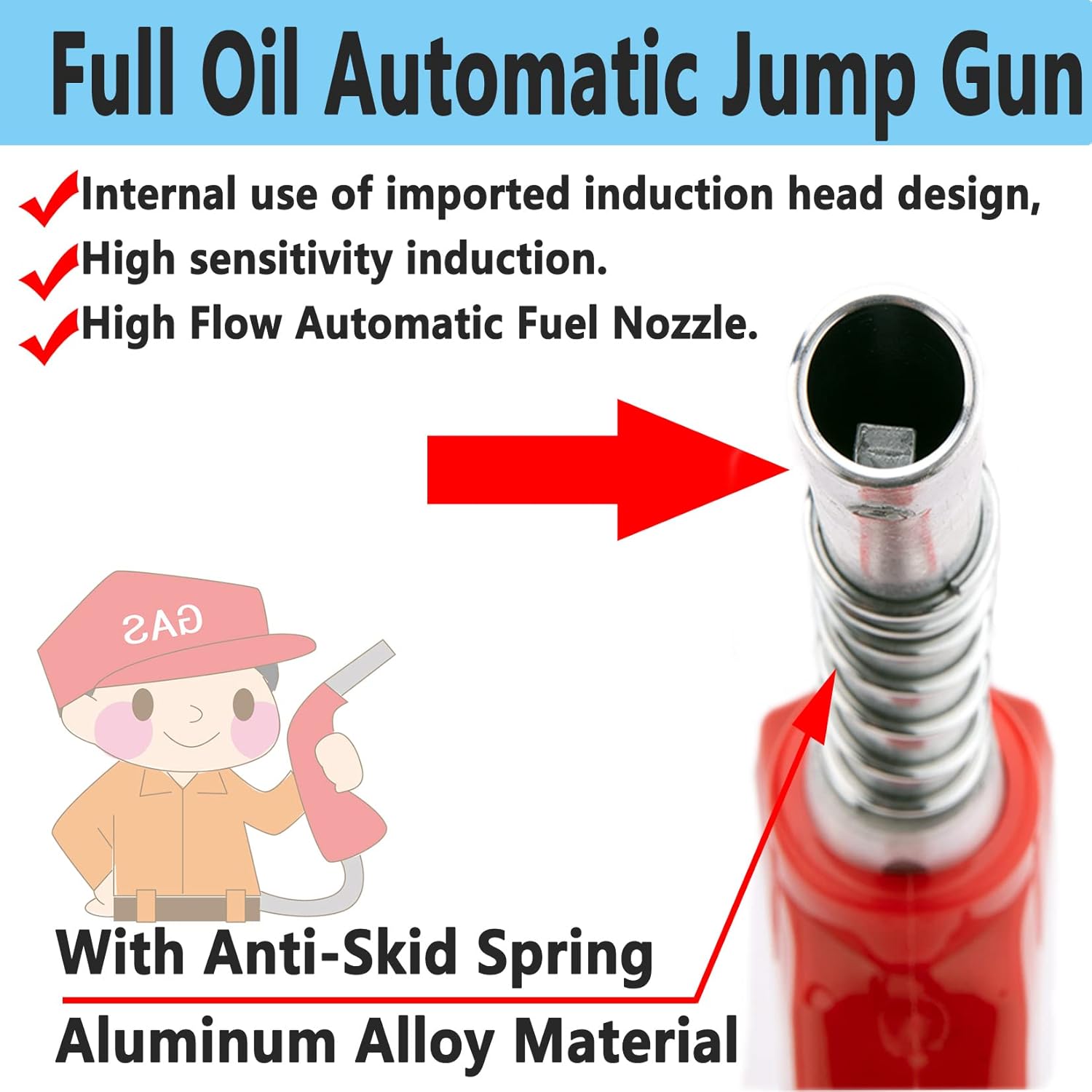 - Auto Shut-Off Fuel Nozzle Automatic Design Prevents Leakage and With anti-skid spring,Top up Self-styled: Prevent overflow of fuel after filling up the tank.Three-speed automatic padlock with anti-slip spring, free your hands.